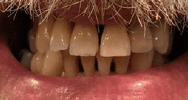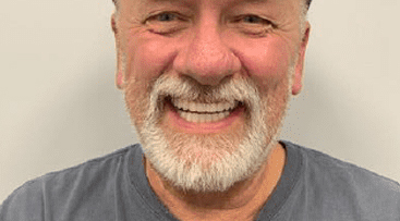 *Disclaimer regarding no gagging with All-On-4® dental implants - The implant bridge is a low-profile “horseshoe” design and does not cover the roof of the mouth, so most patients will not gag with this type of bridge. There is always the rare chance that a patient with an extreme gag reflex could have some gagging with this type of full-arch implant bridge.